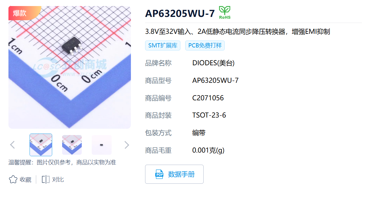 参数非常强大,似乎是梦中情芯,外部仅需四个器件即可驱动!此外他还有3.3V的版本,在纯降压的DCDC小型方案中几乎无对手